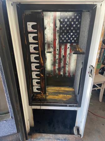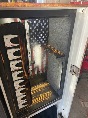 Just completed ready for your garage, man cave, shop, or living room (if allowed). This one is made specifically for the shorties! Can fit 4-5 short items in the main compartment, 6 small items on the door. Plenty of shelf room for accessories. Bottom compartment for holding ammo. Perfect for yourself, a gift, or for those really late Christmas shoppers. 1,100 for this one and can deliver for an extra fee! Follow us on Facebook and instagram! A Safe Place