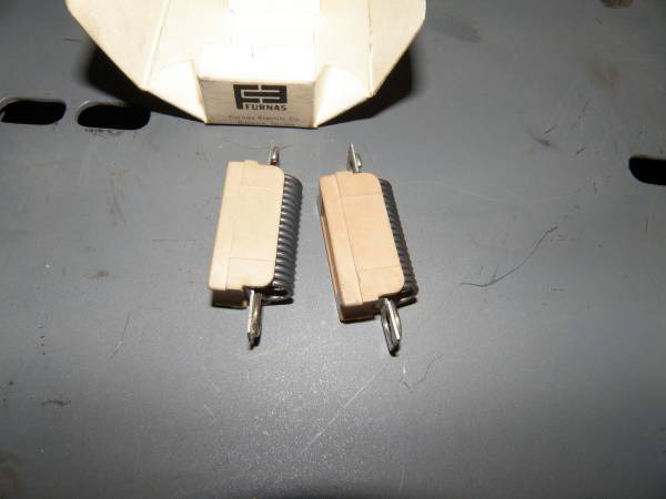 Furnas Overload Relay Heaters E46s. I removed these from a working Furnas magnetic starter as I replaced a motor on my band saw and replaced these elements with a pair/set of E44s which are more accurate for my newer motor based on the FLA motor rating. Nothing wrong with these heaters, just over sized for my motor.